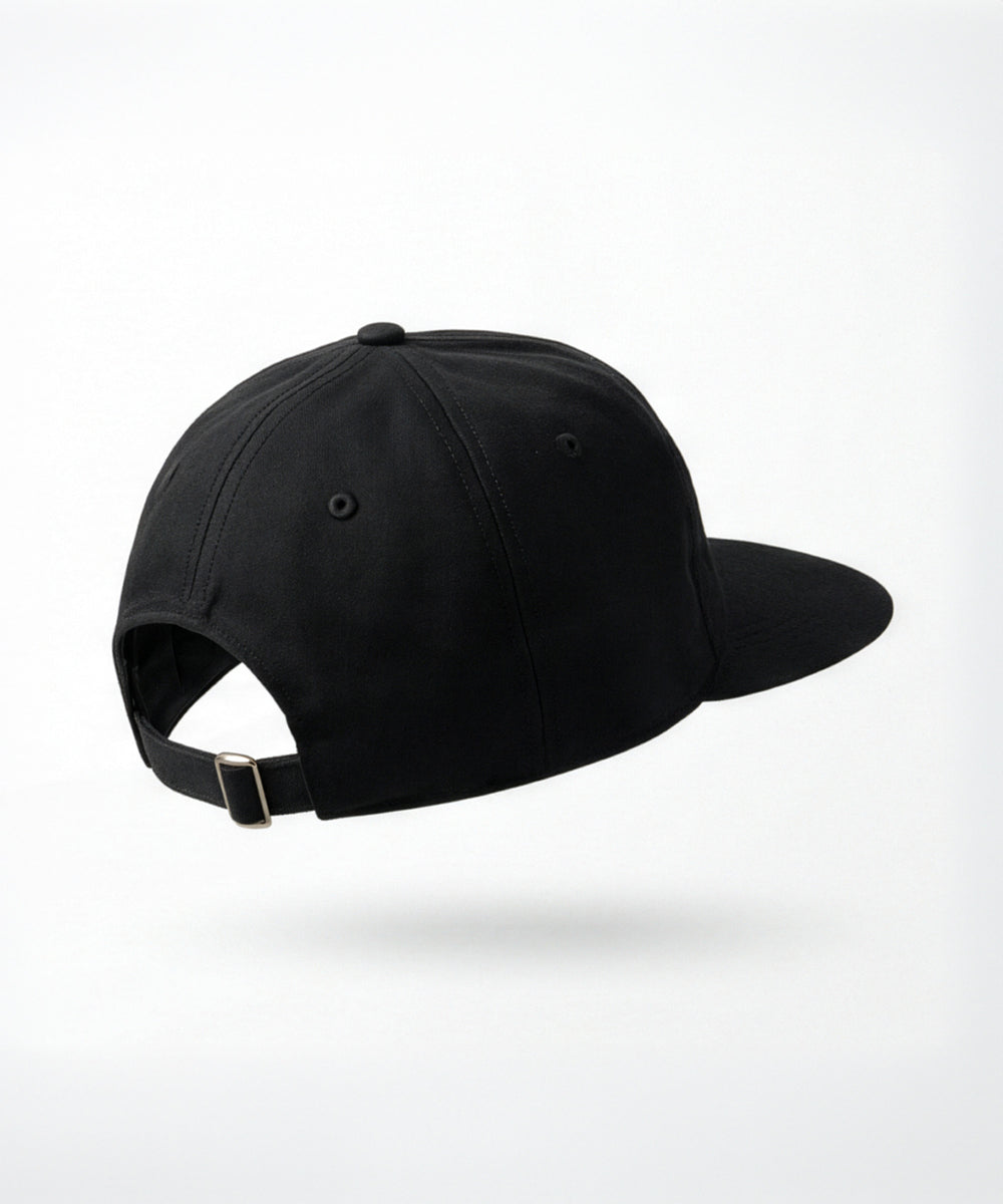 Unstructured Fit heißt: kein steifer Aufbau, kein aufgeblasenes Volumen. Die Cap liegt näher am Kopf, wirkt getragen statt geschniegelt. Flacher Schirm, sauberer Verlauf, hinten verstellbar mit Metallschnalle.